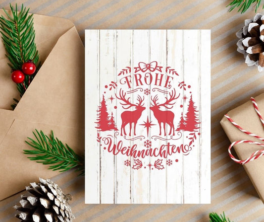 Reindeer Rustic German Christmas Card - Frohe Weihnachten