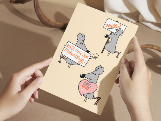 Mouse with Birthday Signs "Geburtstag" Greeting Card