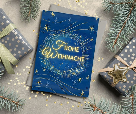 Beautiful Starry Night Sky Christmas Card in German - Frohe Weihnacht