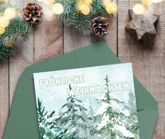 Winter Forest German Christmas Card - Fröhliche Weihnachten