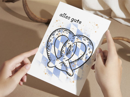 Bavarian Greeting Card with Pretzel "Alles Gute" for Any Occasion