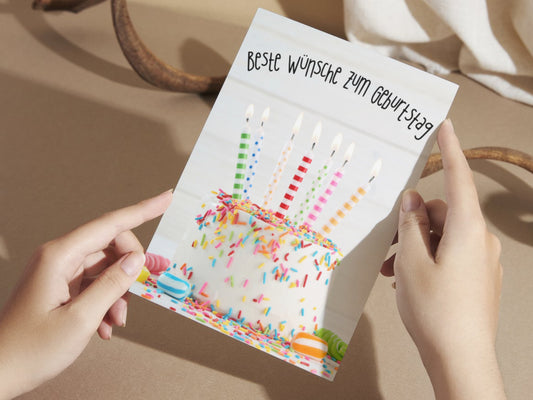 Cake with Candles German Birthday "Geburtstag" Greeting Card