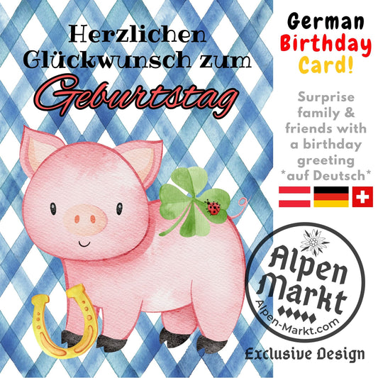 Lucky Pig German Birthday "Geburtstag" Greeting Card