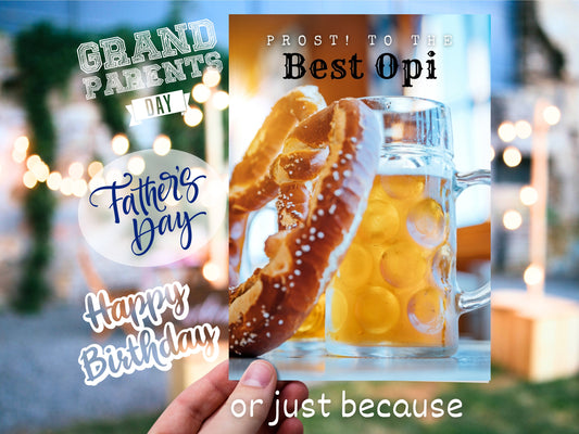 "Prost! to the Best Opi" German greeting card for Grandpa