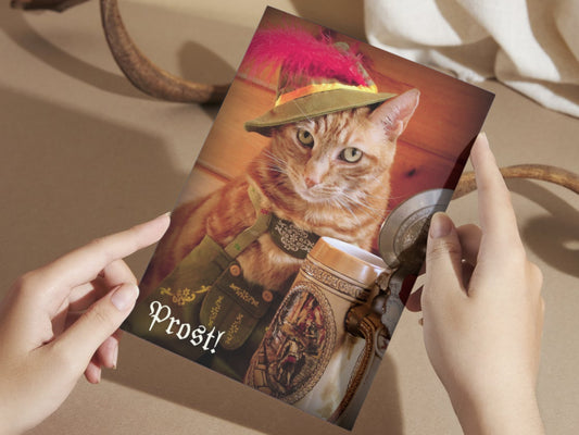 Prost! Cat in Lederhosen with Beer Funny Greeting Card