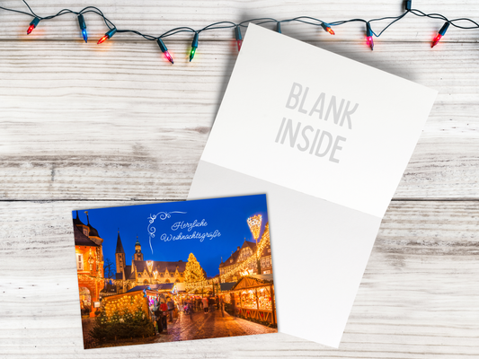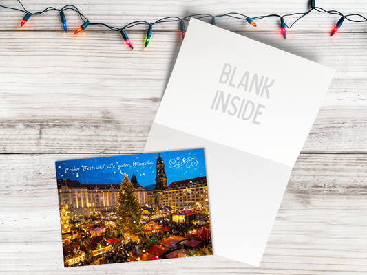 German Christmas Card - Frohes Fest und all gute Wünsche Happy Holidays and good wishes at the Xmas market