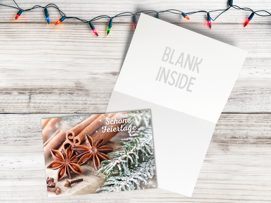German Christmas Card - Schöne Feiertage Happy Holidays warm winter spices