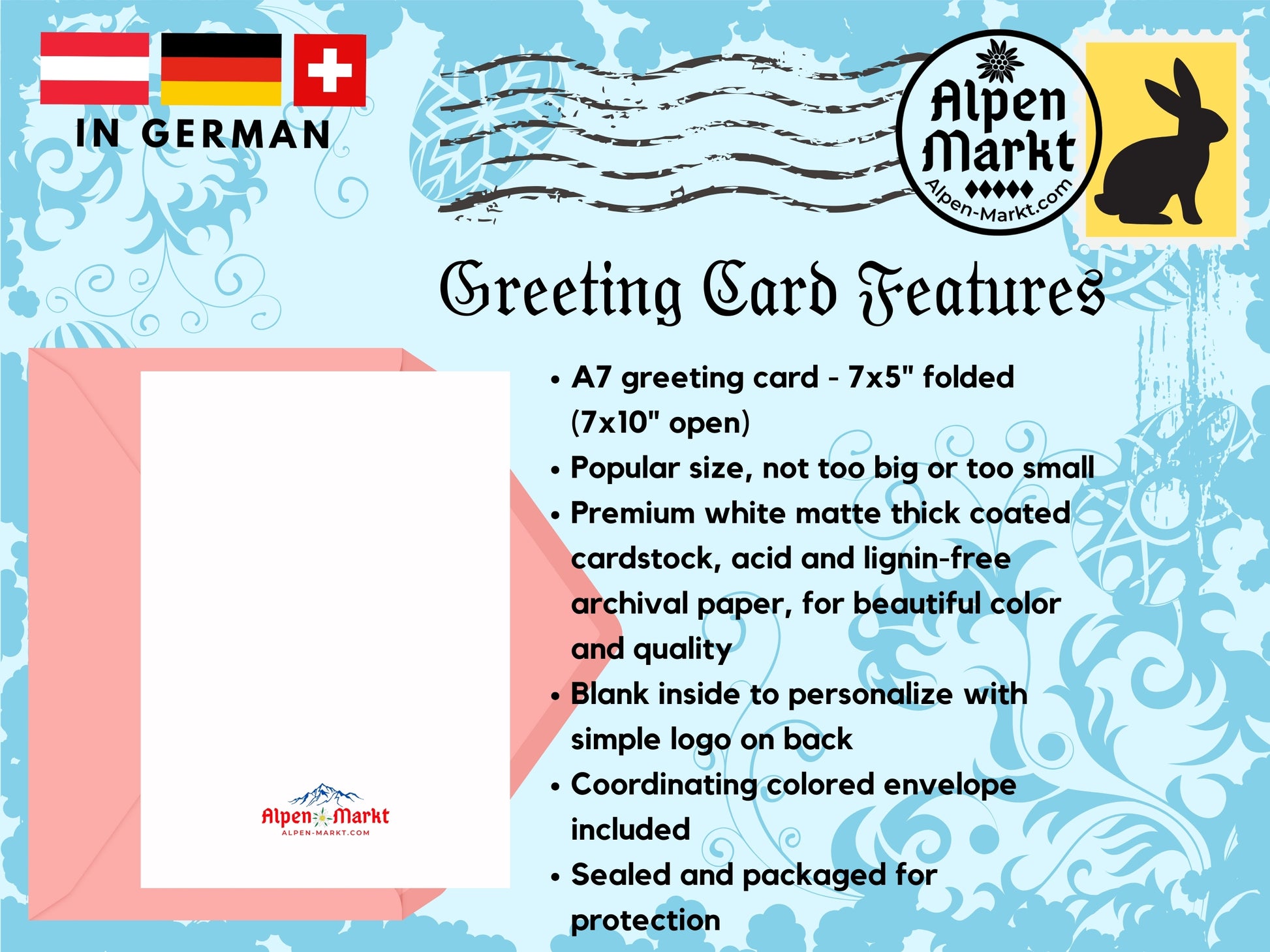 π Blank inside for you to personalize, simple AlpenMarkt logo on back, and coordinating colored envelope included π