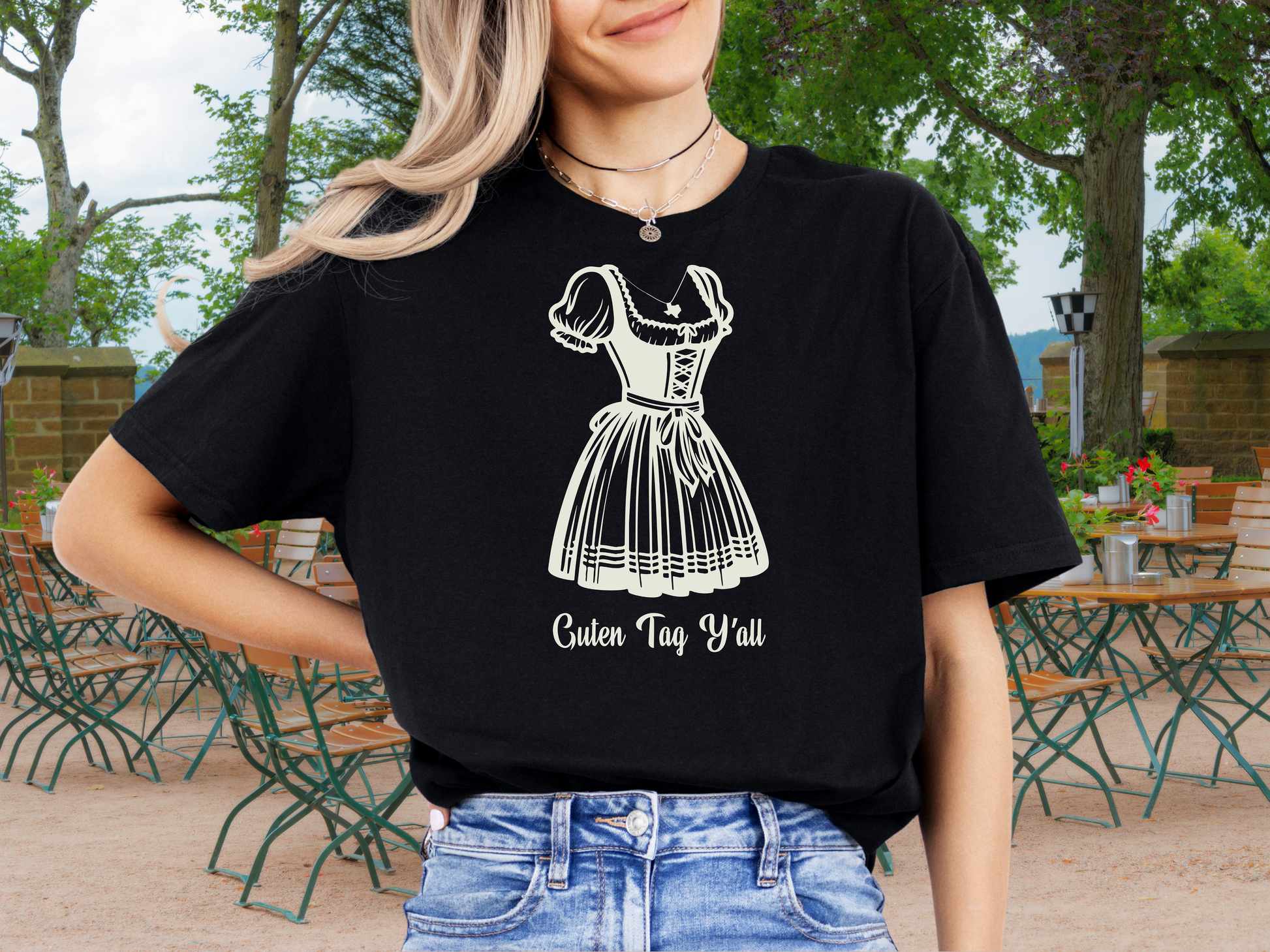 “Guten Tag” is a traditional German greeting that means “Good Day,” and this stylish tee makes sure your day starts with a smile. With its comfortable fit and unique Texas detail at the neckline, it’s the perfect mix of southern spirit and Bavarian flair—great for the beer tent, a night out, or any fun gathering.